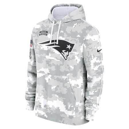 Men's New England Patriots Nike Arctic Camo 2024 Salute to Service Club Fleece Pullover Hoodie