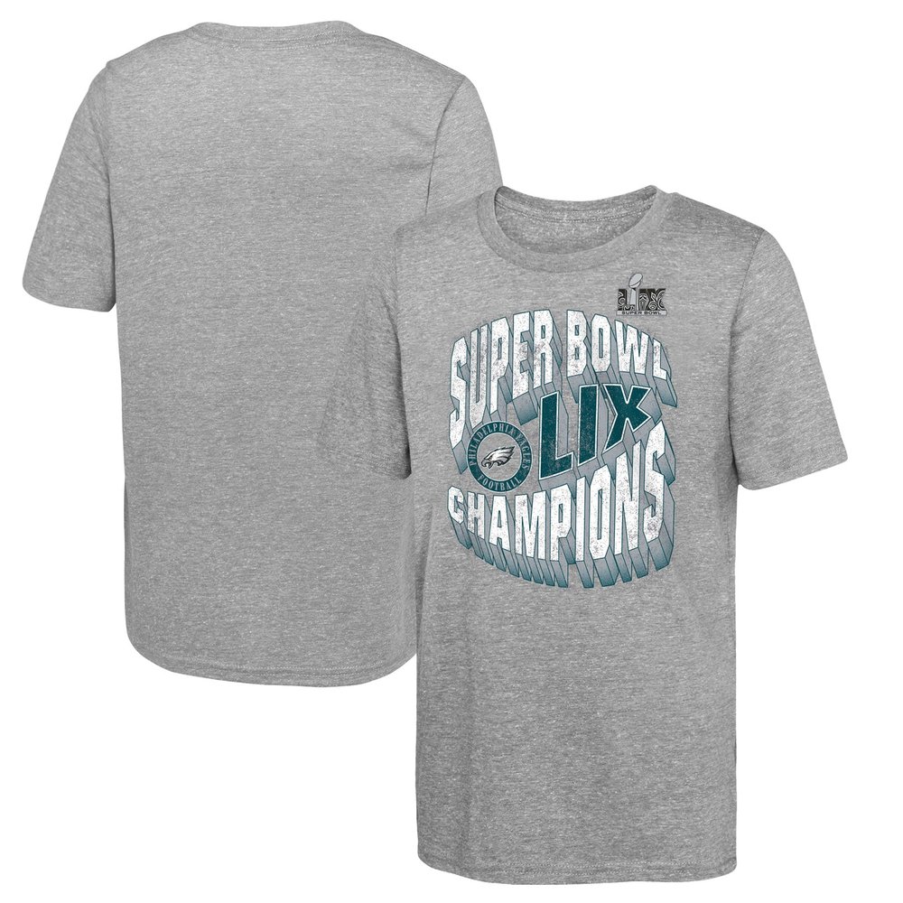 Youth Philadelphia Eagles Heather Gray Super Bowl LIX Champions Historic Win Tri-Blend T-Shirt