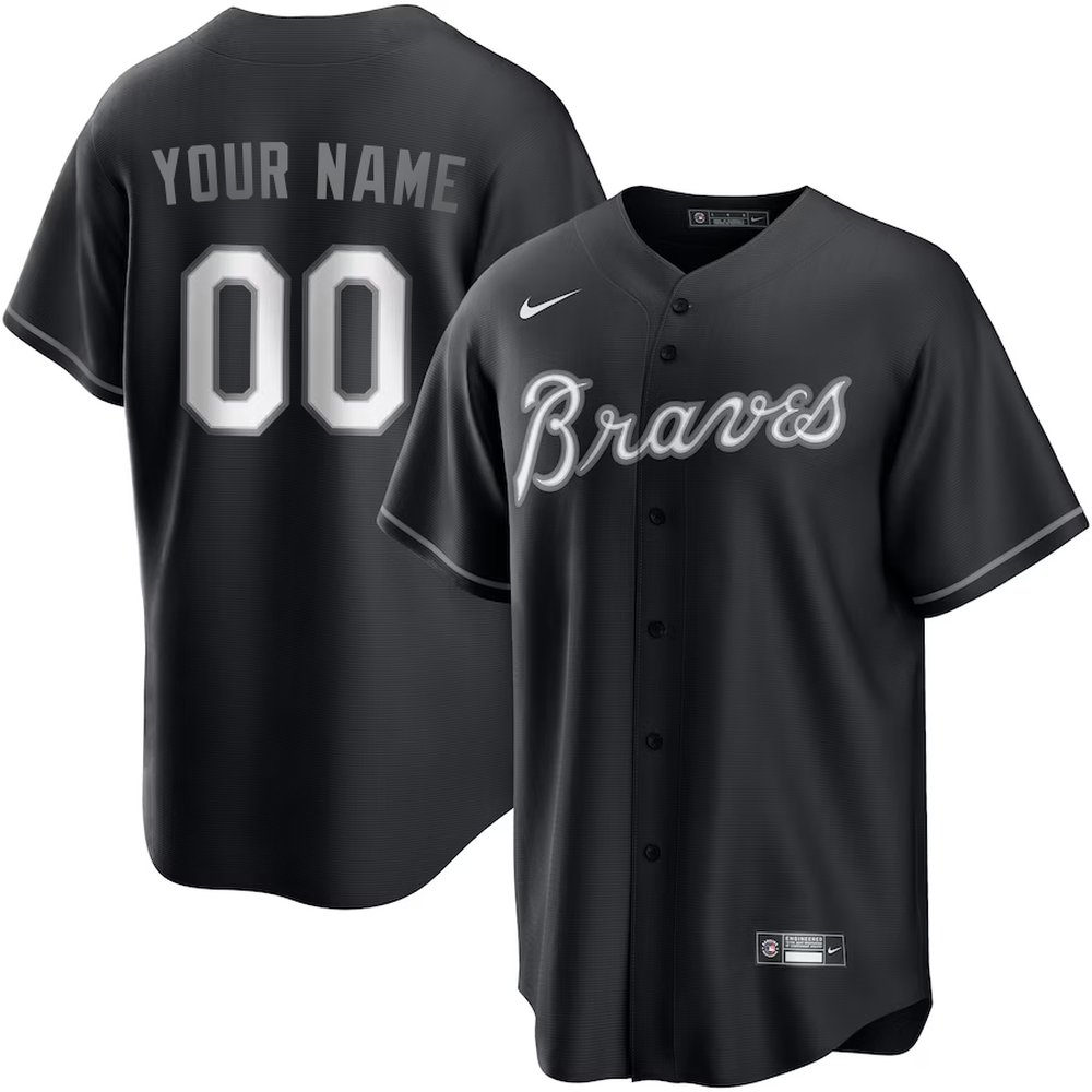 Men's Atlanta Braves Nike Custom Black Lights Out Replica Jersey
