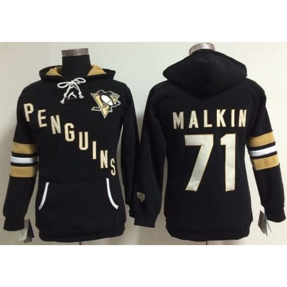 Pittsburgh Penguins #71 Evgeni Malkin Black Women's Old Time Heidi NHL Hoodie