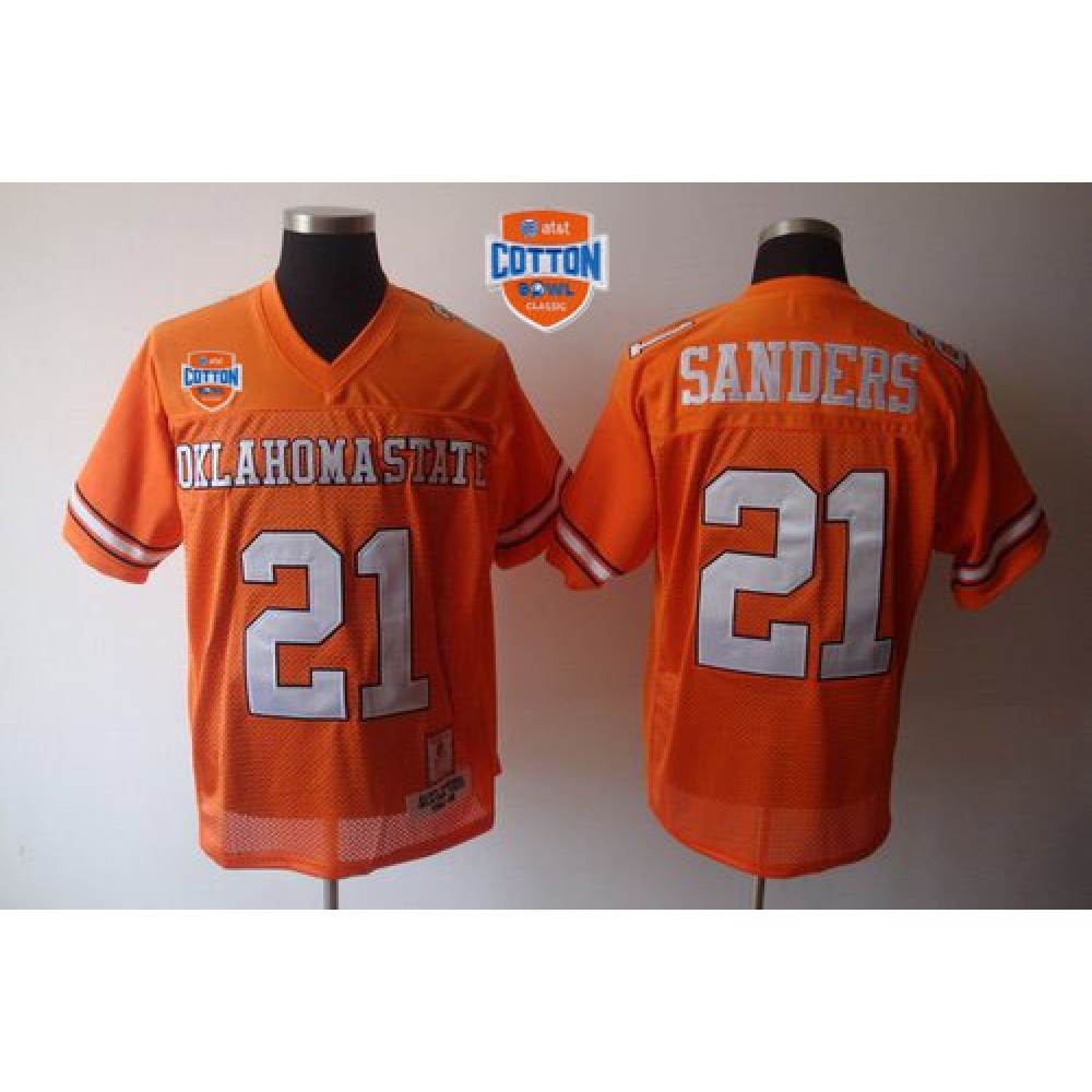 Cowboys #21 Barry Sanders Orange Throwback 2014 Cotton Bowl Patch Stitched NCAA Jersey