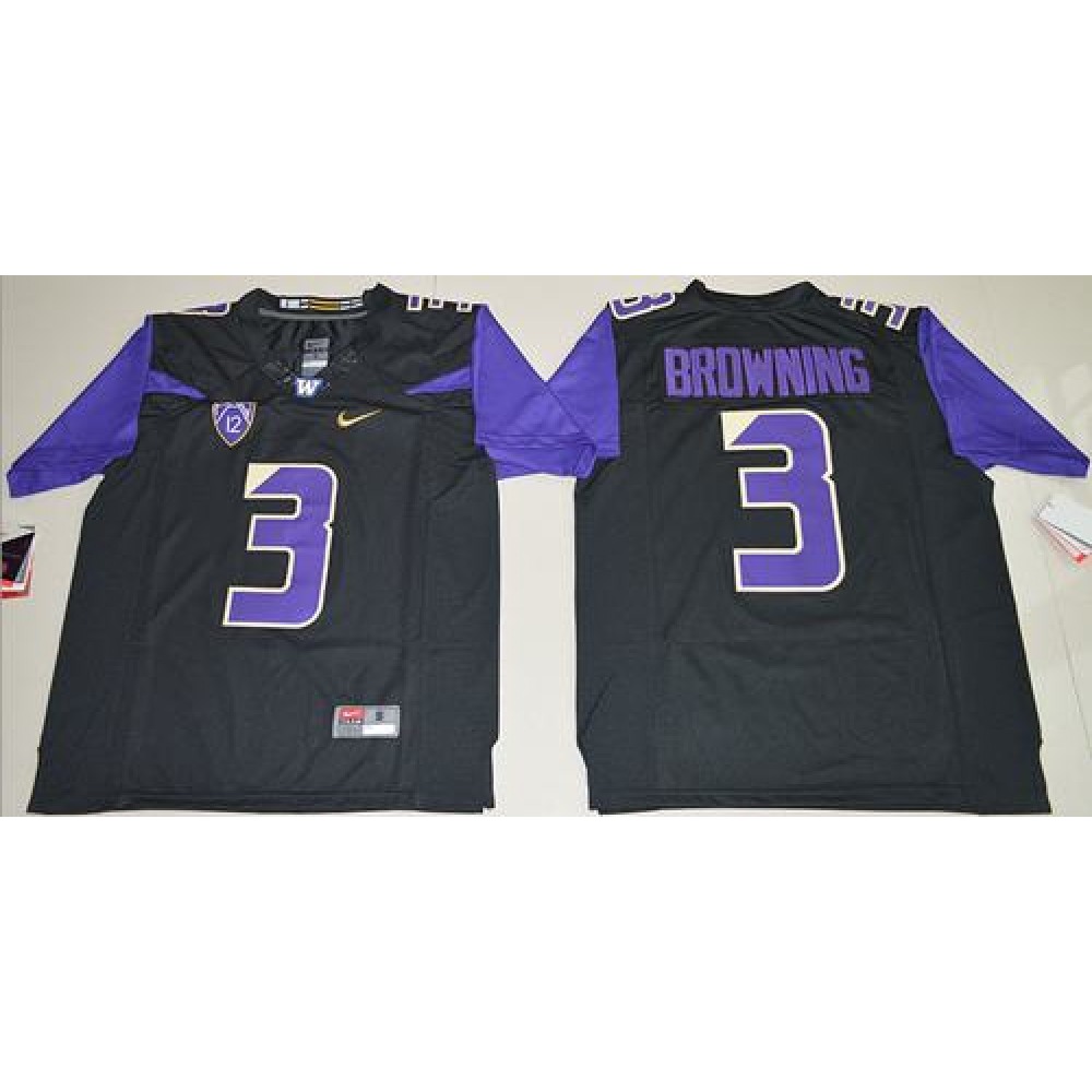 Huskies #3 Jake Browning Black Limited Stitched NCAA Jersey