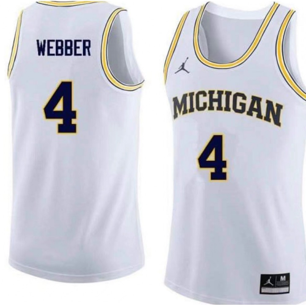Men's Michigan Wolverines #4 Chris Webber White Stitched Basketball Jersey