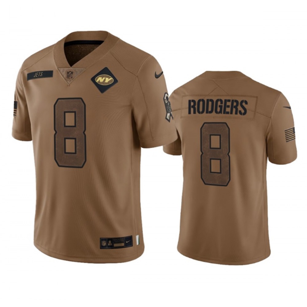 Men's New York Jets #8 Aaron Rodgers 2023 Brown Salute To Service Limited Stitched Football Jersey