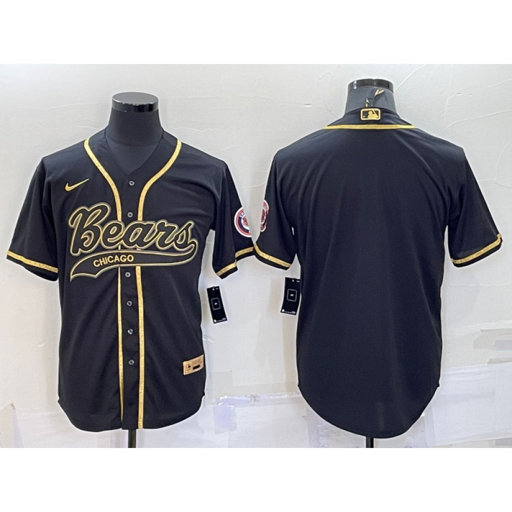 Men's Chicago Bears Blank Black Gold With Patch Cool Base Stitched Baseball Jersey