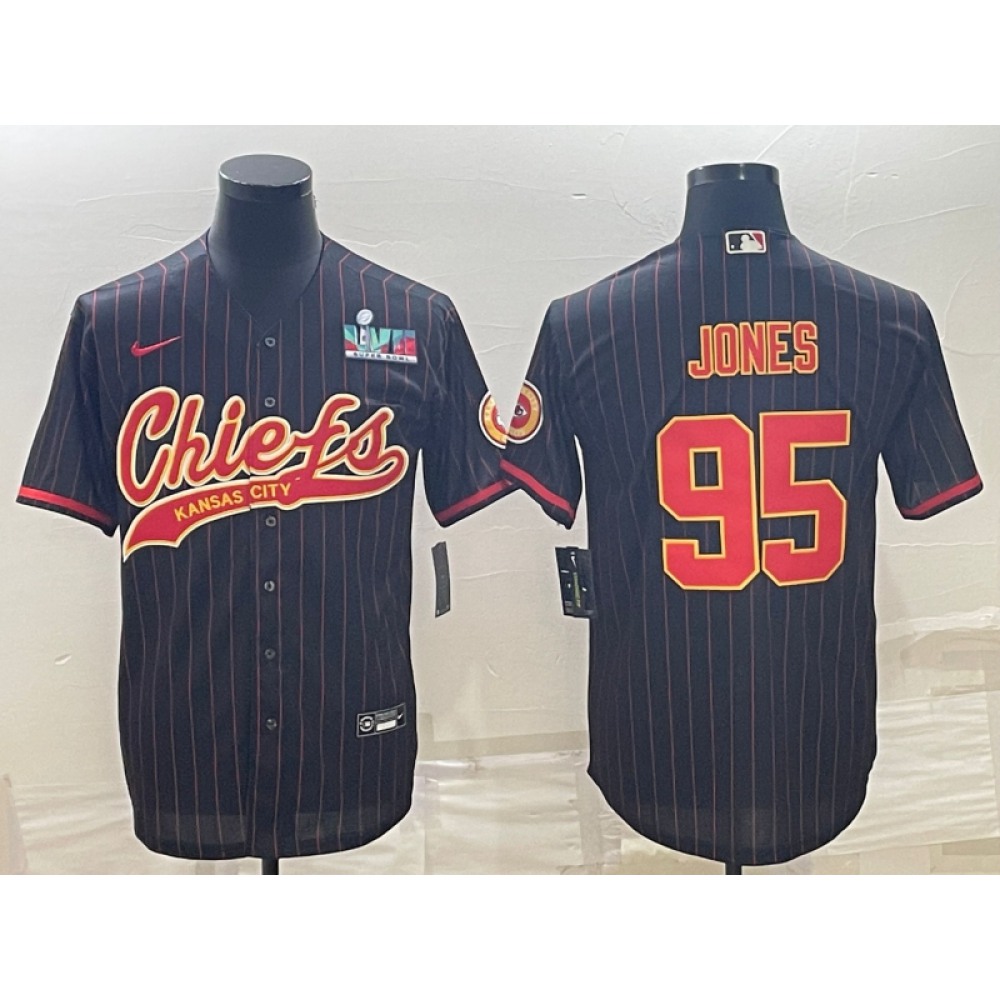 Men's Kansas City Chiefs #95 Chris Jones Black With Super Bowl LVII Patch Cool Base Stitched Baseball Jersey