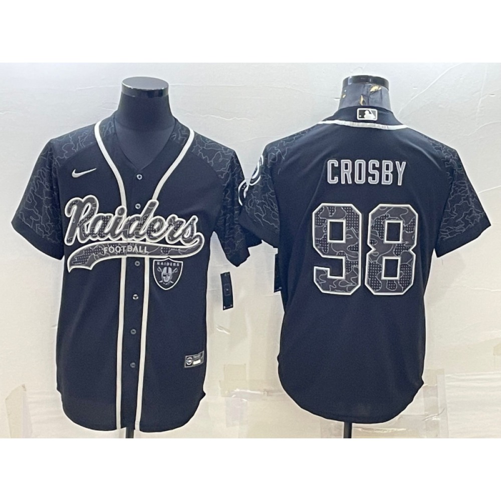 Men's Las Vegas Raiders #98 Maxx Crosby Black Reflective With Patch Cool Base Stitched Baseball Jersey