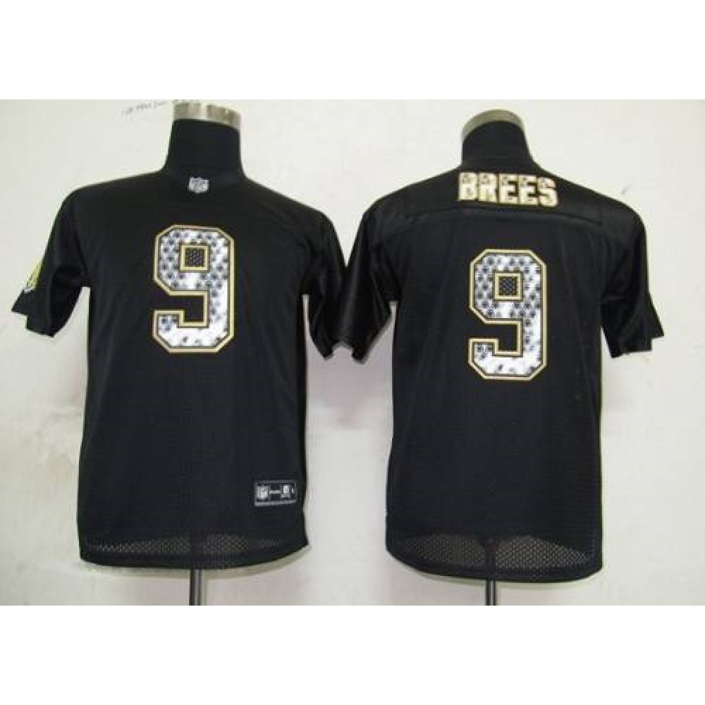 Sideline Black United Saints #9 Drew Brees Black Stitched Youth NFL Jersey