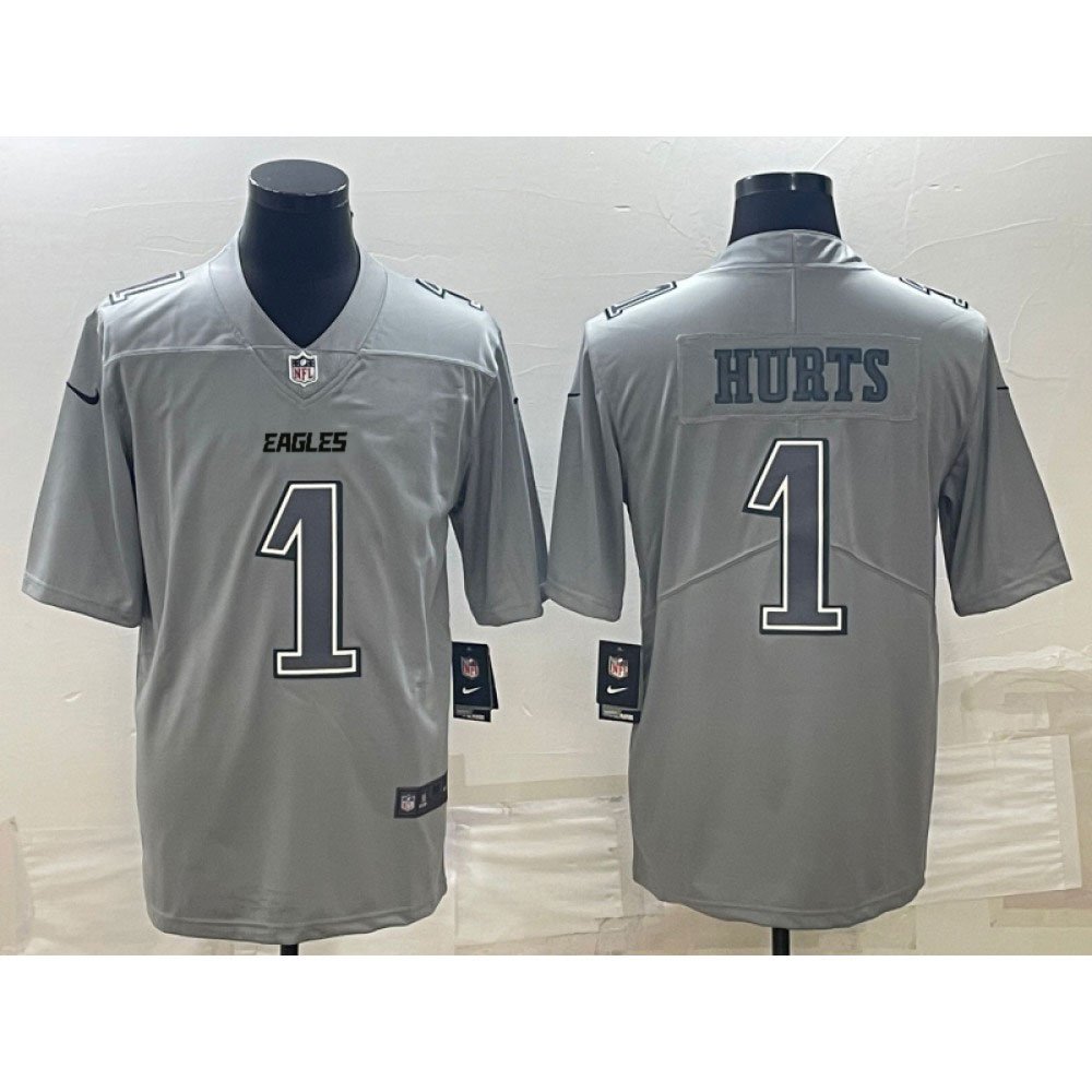 Men's Philadelphia Eagles #1 Jalen Hurts Gray Atmosphere Fashion Stitched Jersey