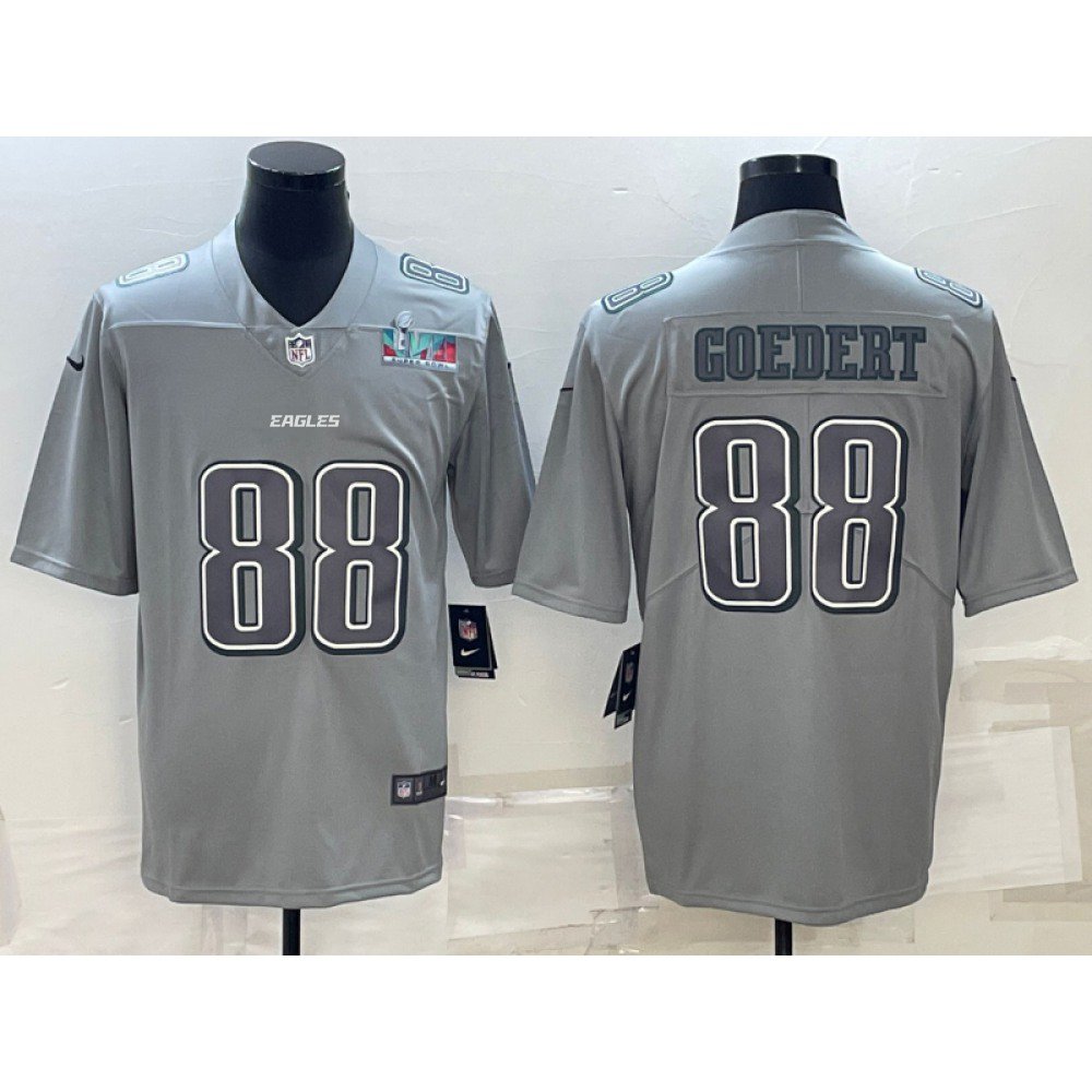 Men's Philadelphia Eagles #88 Dallas Goedert Gray Super Bowl LVII Patch Atmosphere Fashion Stitched Jersey