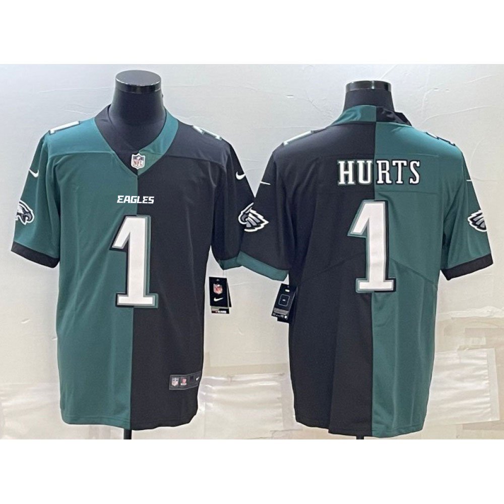 Men's Philadelphia Eagles #1 Jalen Hurts Black & Green Split Limited Stitched Jersey