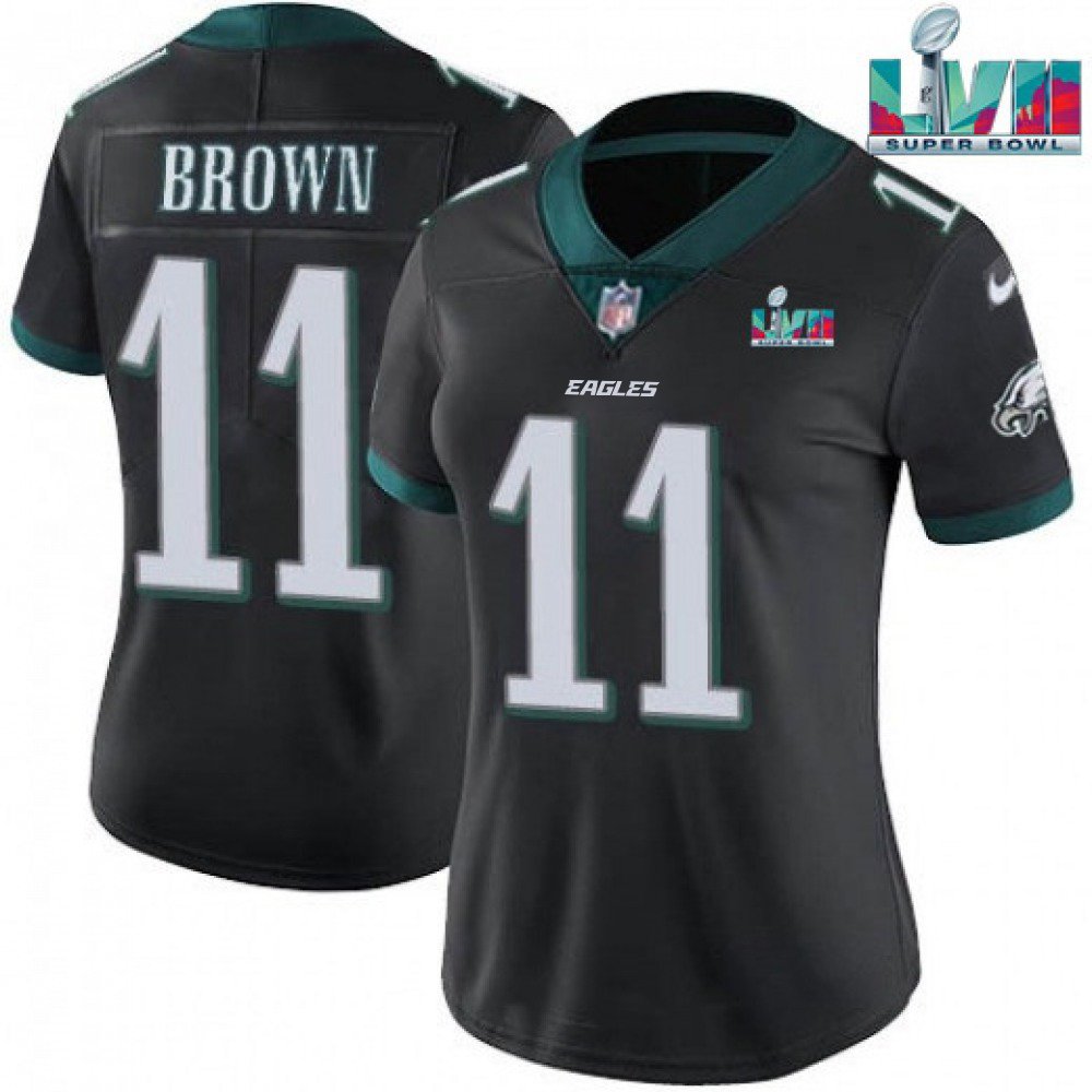 Women's Philadelphia Eagles #11 A.J. Brown Black Super Bolw LVII Patch Vapor Untouchable Limited Stitched Football Jersey(Run Small)