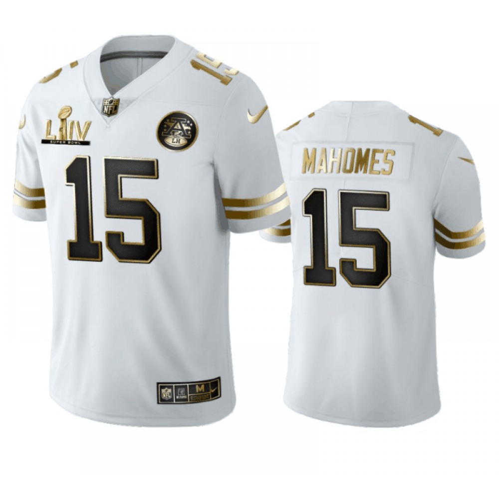 Men's Kansas City Chiefs #15 Patrick Mahomes White Super Bowl LIV Golden Edition Limited Stitched Jersey