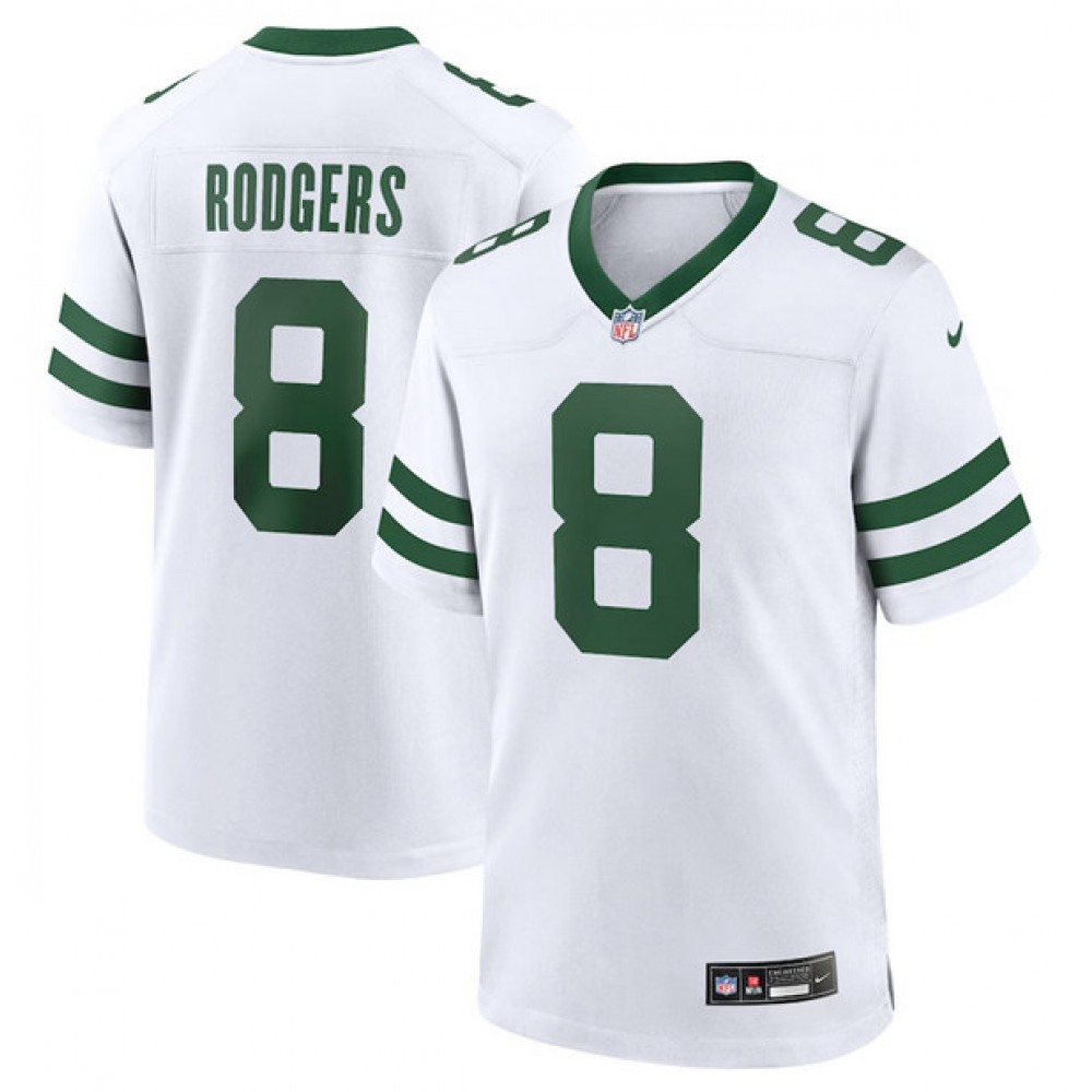 Men's New York Jets #8 Aaron Rodgers White Throwback Player Stitched Game Jersey