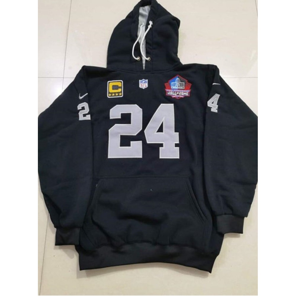 Men's Las Vegas Raiders #24 Charles Woodson Black Pullover Hoodie