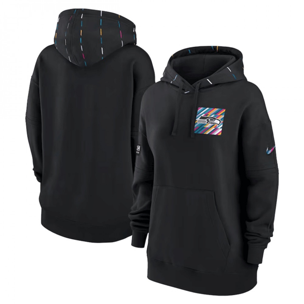 Women's Seattle Seahawks Black 2023 Crucial Catch Club Pullover Hoodie(Run Small)