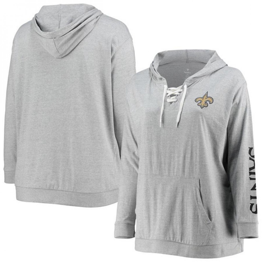 Women's New Orleans Saints Heathered Gray Lace-Up Pullover Hoodie