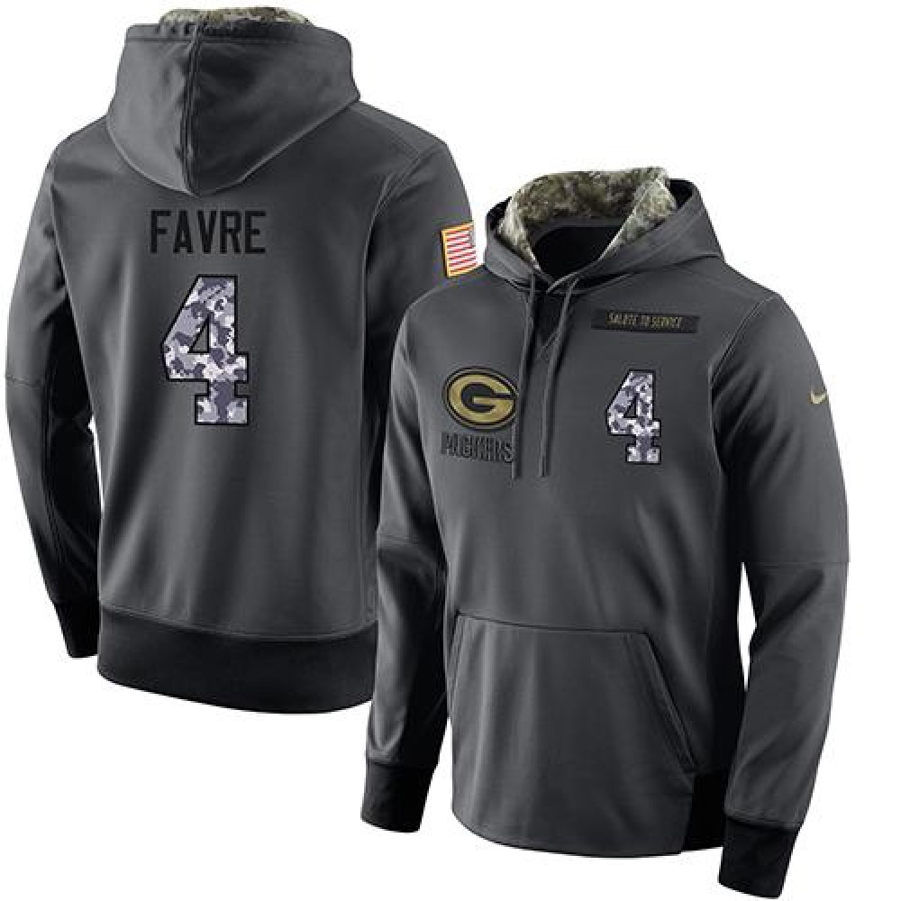 NFL Men's Nike Green Bay Packers #4 Brett Favre Stitched Black Anthracite Salute to Service Player Performance Hoodie