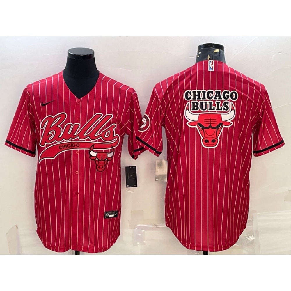 Men's Chicago Bulls Red Team Big Logo Cool Base Stitched Baseball Jersey