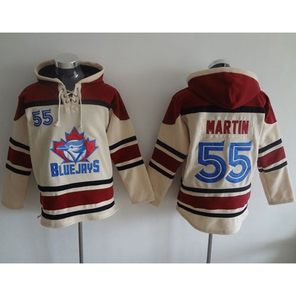 Blue Jays #55 Russell Martin Cream Sawyer Hooded Sweatshirt MLB Hoodie