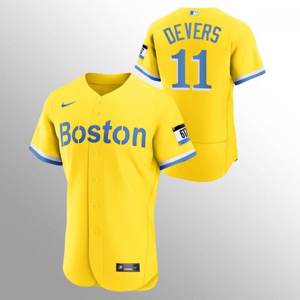 Men's Boston Red Sox #11 Rafael Devers Gold 2021 City Connect Flex base Stitched Jersey
