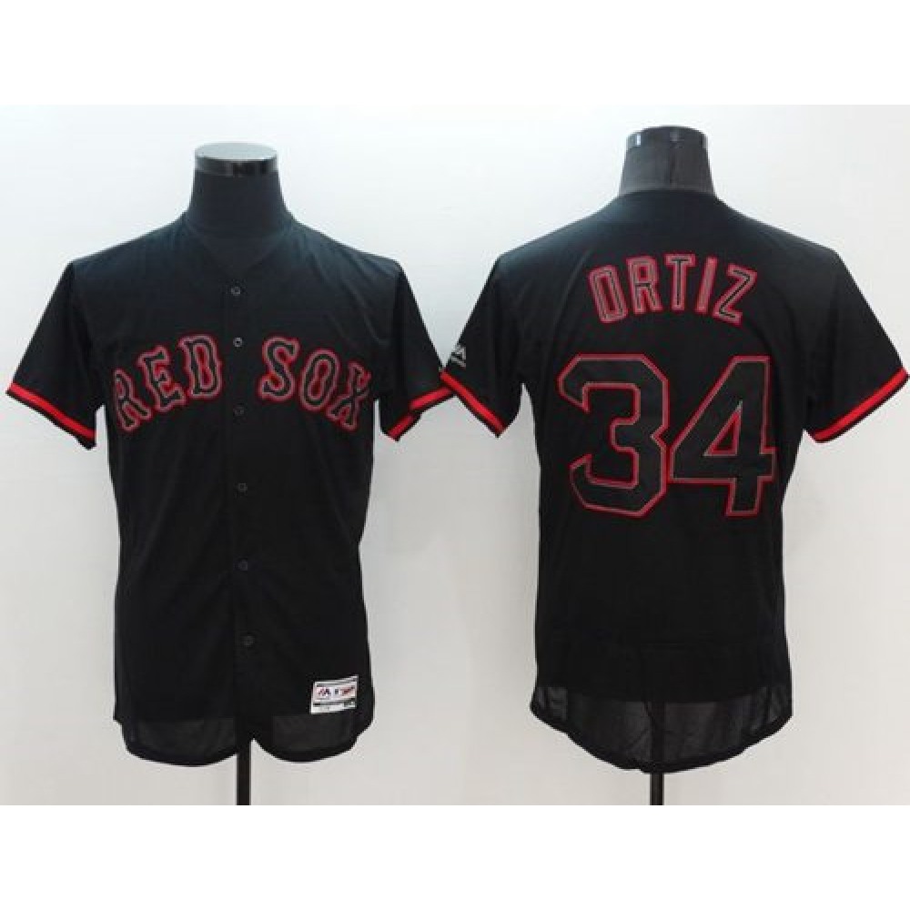 Red Sox #34 David Ortiz Black Fashion Flexbase Authentic Collection Stitched MLB Jersey