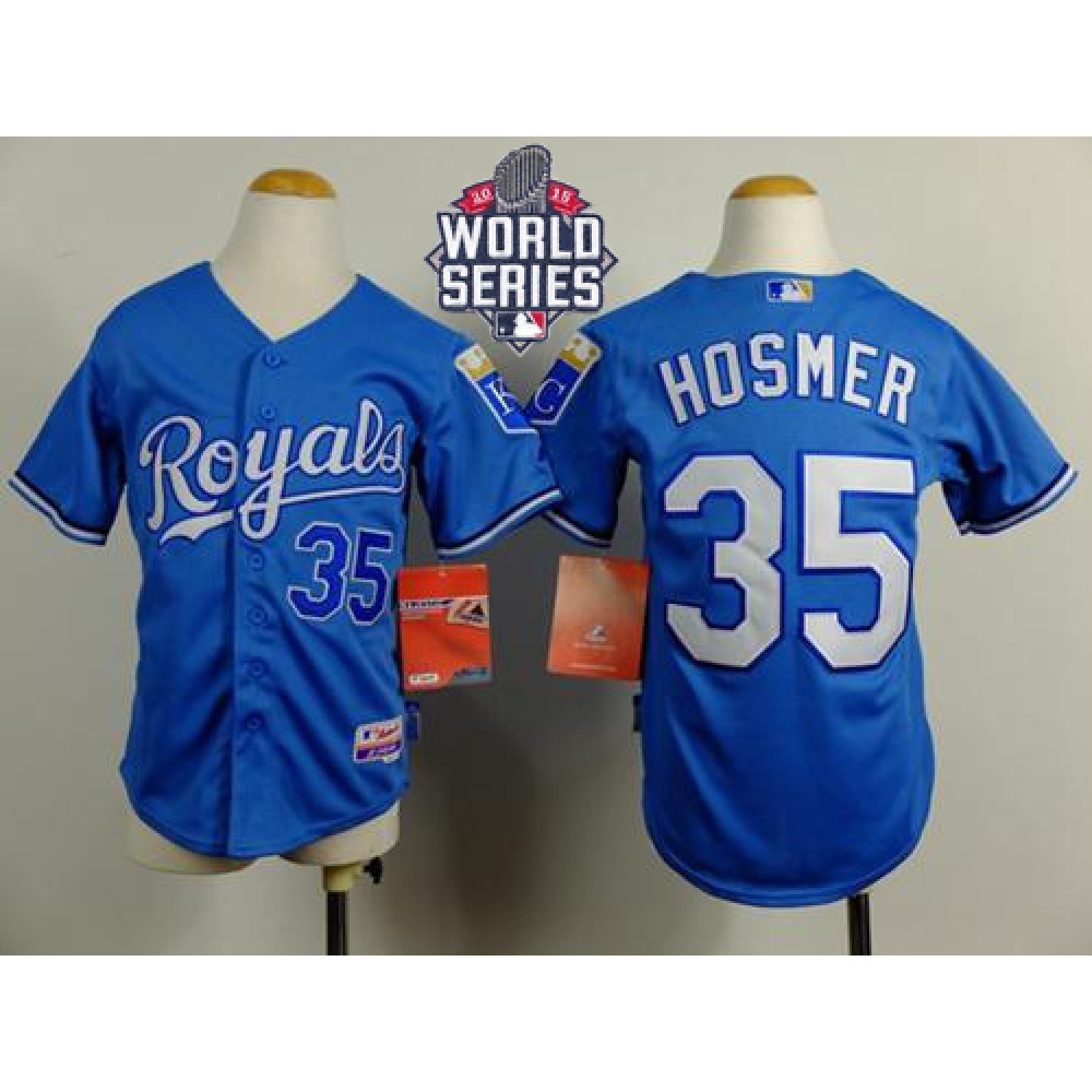 Royals #35 Eric Hosmer Blue Cool Base Alternate 1 W/2015 World Series Patch Stitched Youth MLB Jersey
