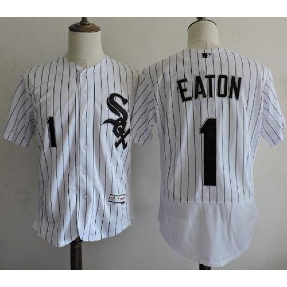 White Sox #1 Adam Eaton White(Black Strip) Flexbase Authentic Collection Stitched MLB Jersey