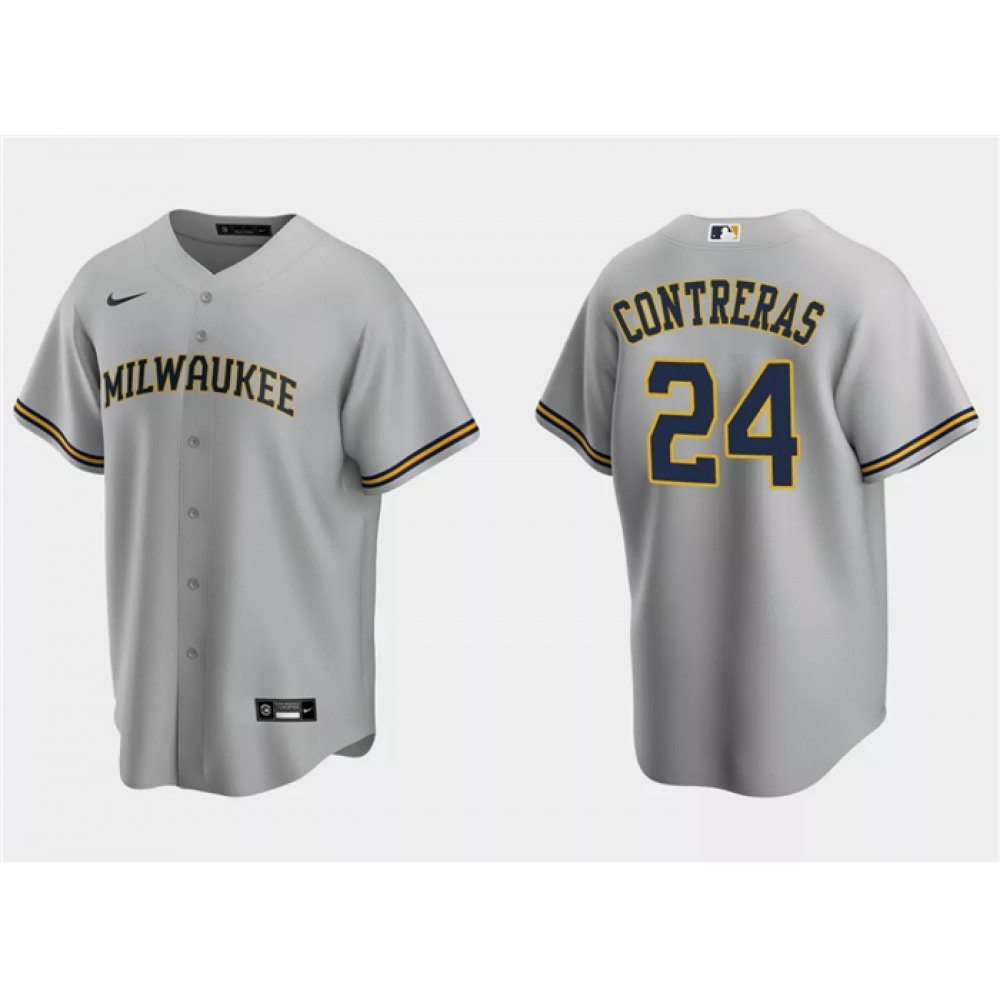 Men's Milwaukee Brewers #24 William Contreras Grey Cool Base Stitched Jersey