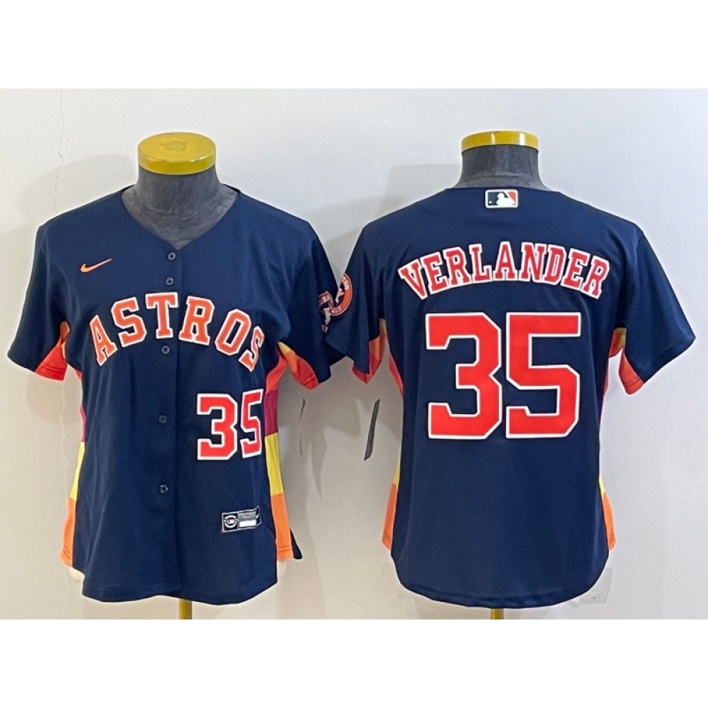 Youth Houston Astros #35 Justin Verlander Navy With Patch Cool Base Stitched Jersey