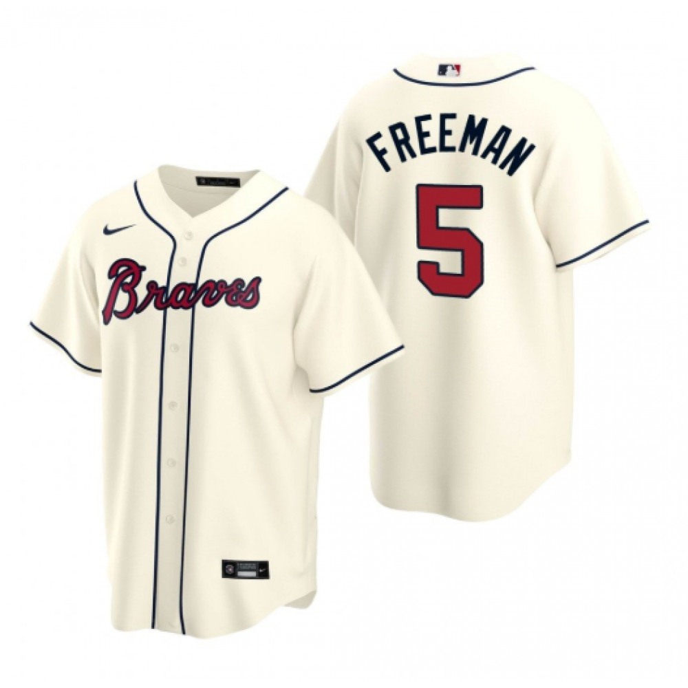 Men's Atlanta Braves #5 Freddie Freeman Cream Cool Base Stitched Jersey