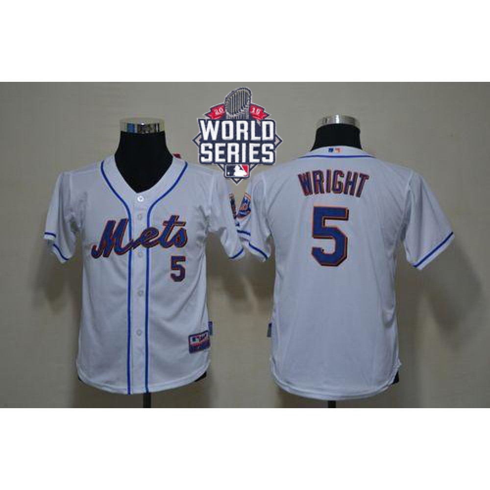 Mets #5 David Wright White Cool Base W/2015 World Series Patch Stitched Youth MLB Jersey