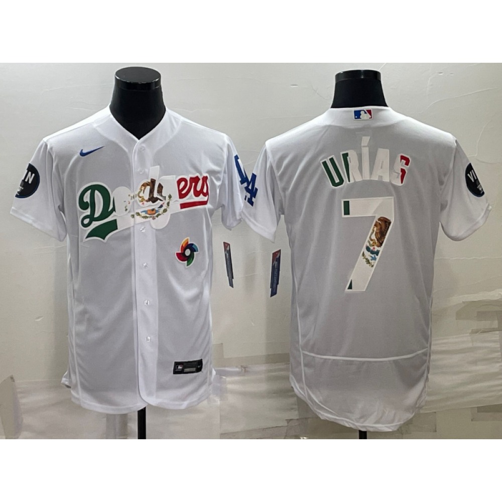 Men's Los Angeles Dodgers #7 Julio Urias White With Vin Scully Patch Flex Base Stitched Baseball Jersey