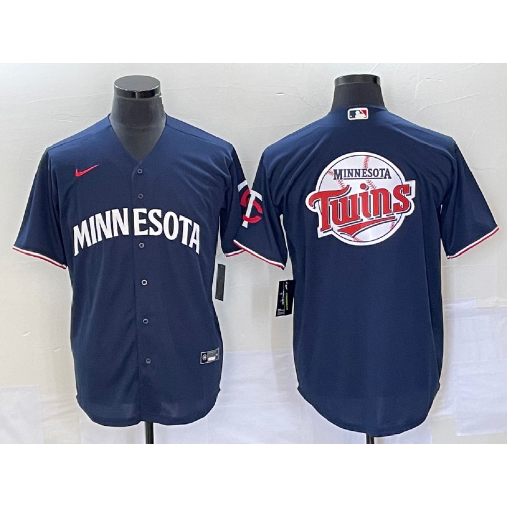 Men's Minnesota Twins With Team Logo in Back Navy Cool Base Stitched Jersey
