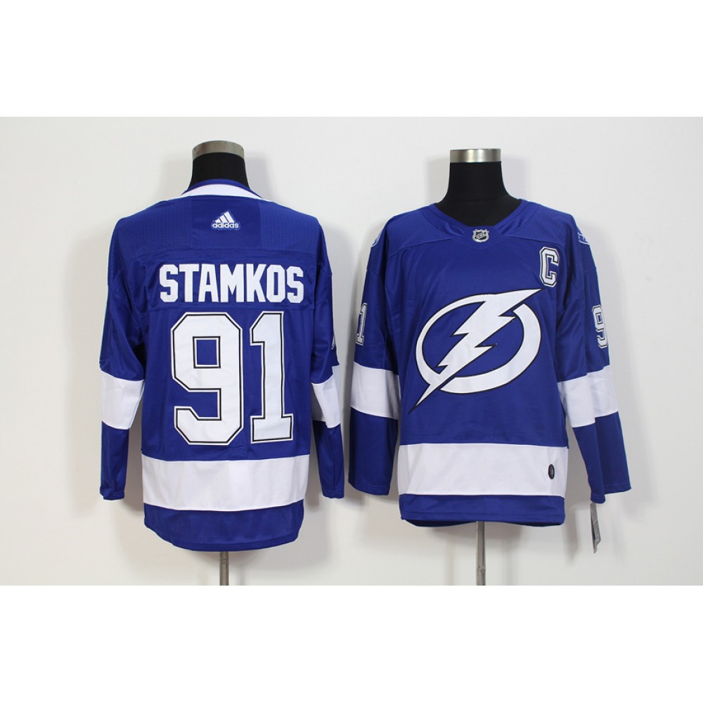 Men's Adidas Tampa Bay Lightning #91 Steven Stamkos Blue Stitched NHL Jersey