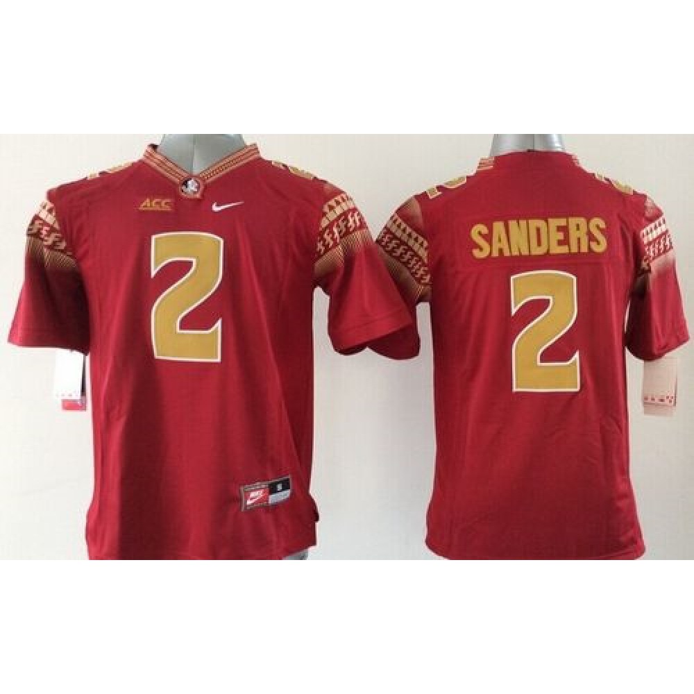 Seminoles #2 Deion Sanders Red Limited Stitched Youth NCAA Jersey