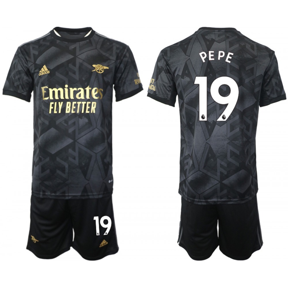 Men's Arsenal F.C #19 Nicolas Pepe 2023 Black Away Soccer Jersey Suit