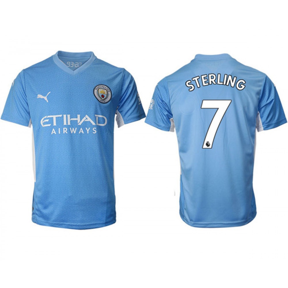 Men's Manchester City #7 Raheem Sterling 2021/22 Blue Home Soccer Jersey Suit