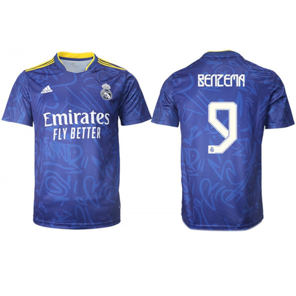 Men's Real Madrid #9 Karim Benzema 2021/22 Blue Away Soccer Jersey