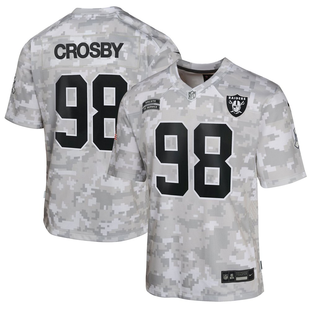 Youth Las Vegas Raiders Maxx Crosby Nike Arctic Camo 2024 Salute to Service Game Jersey