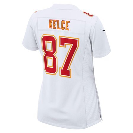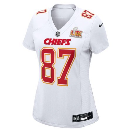 Women's Kansas City Chiefs Travis Kelce Nike Tundra White Super Bowl LIX Fashion Game Jersey