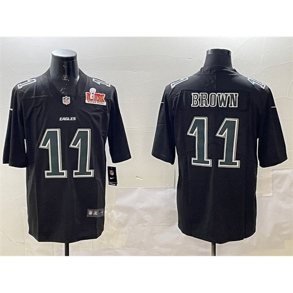 Men's Philadelphia Eagles #11 A. J. Brown Black 2025 Super Bowl LIX Patch Fashion Vapor Untouchable Limited Stitched Football Jersey