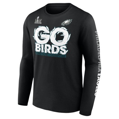 Men's Philadelphia Eagles Black Super Bowl LIX Champions Big & Tall Go Birds Long Sleeve T-Shirt