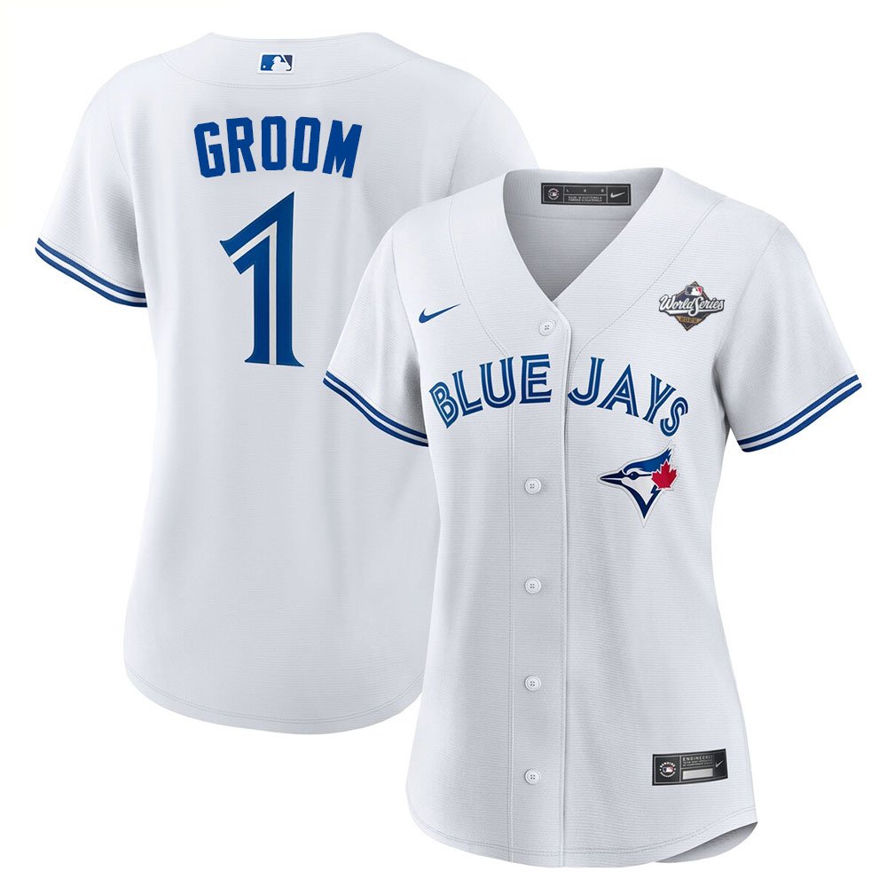 Women's Toronto Blue Jays Nike #1 Groom 2025 World Series White Home Replica Jersey