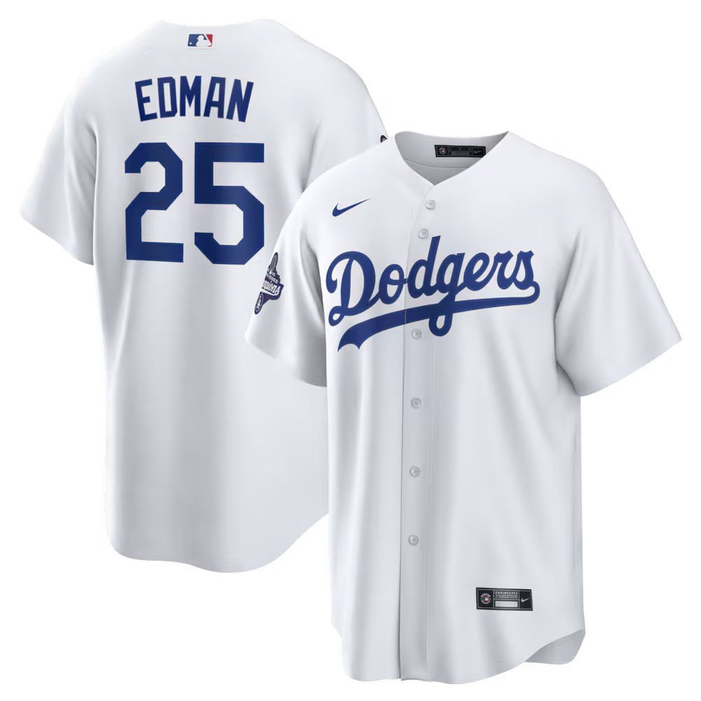 Men's Los Angeles Dodgers #25 Tommy Edman Nike White 2025 World Series Champions Home Replica Jersey