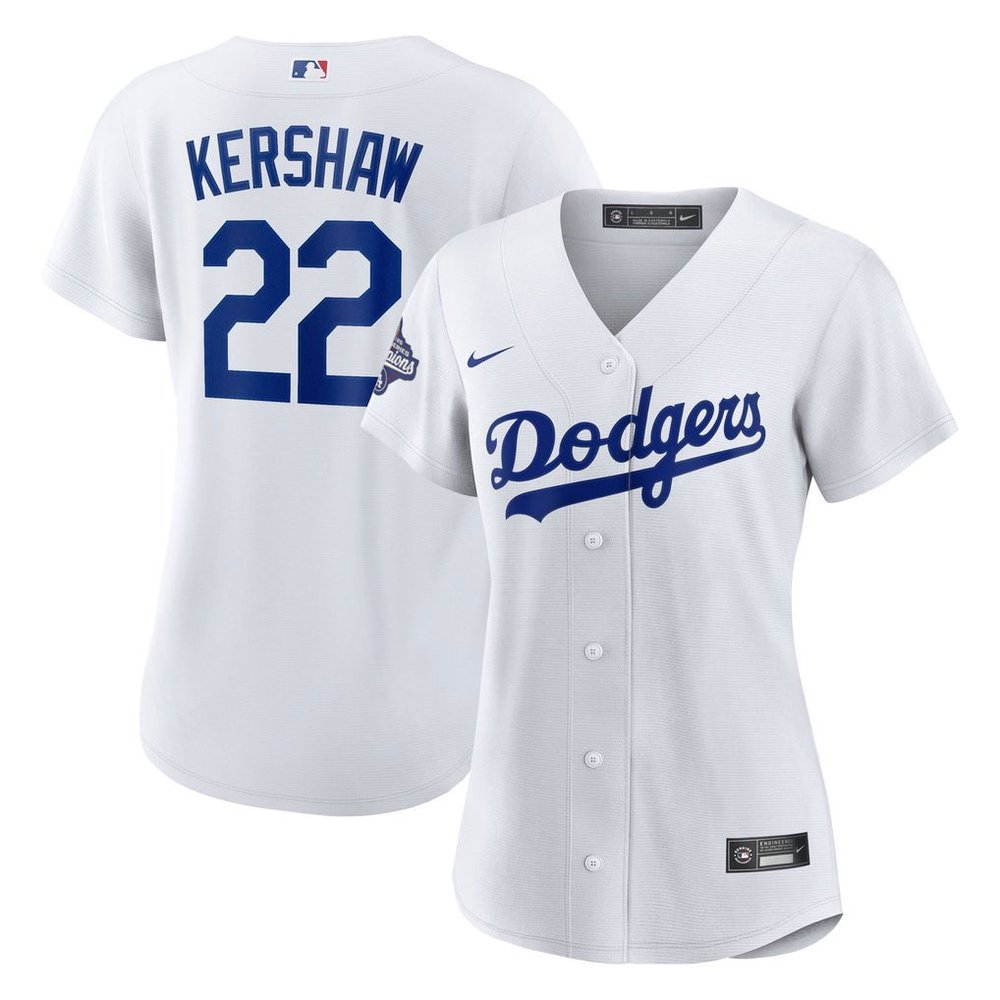 Women's Los Angeles Dodgers #22 Clayton Kershaw Nike White Home 2025 World Series Champions Replica Jersey