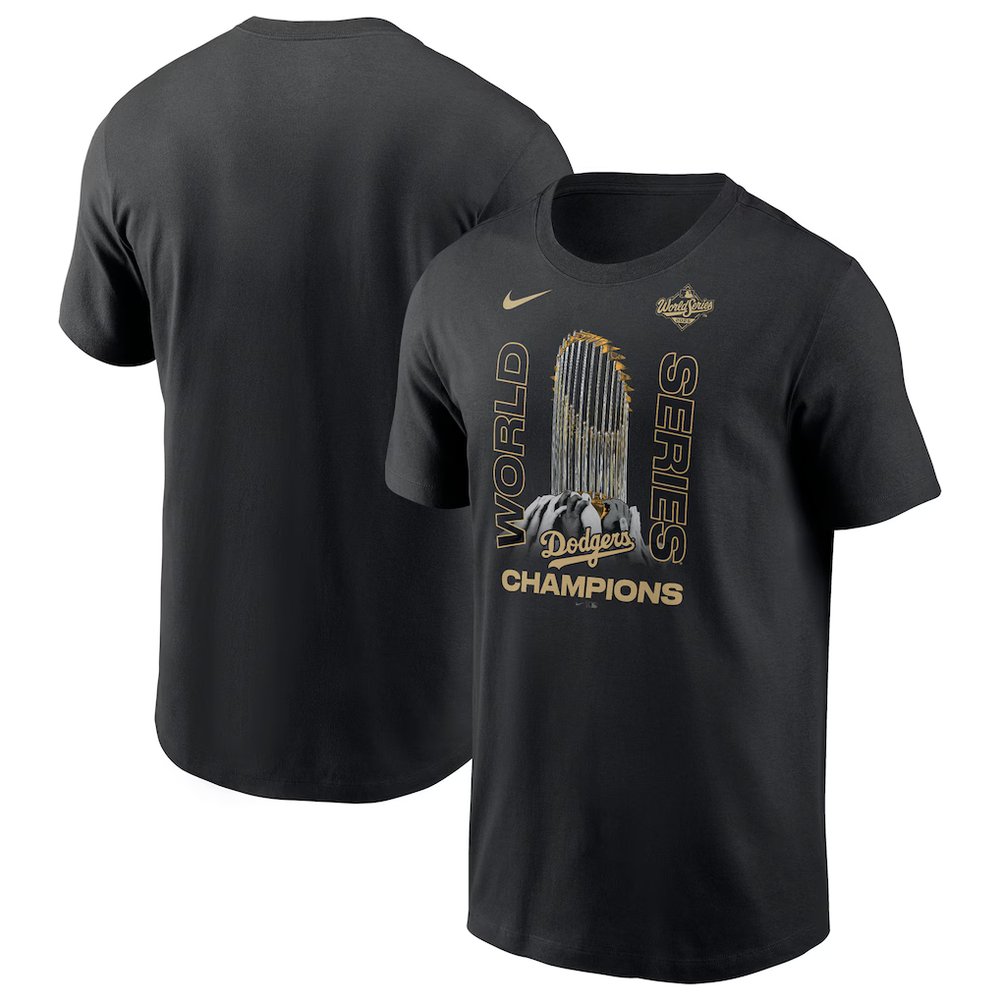Men's Los Angeles Dodgers Nike Black 2025 World Series Champions Raise The Trophy T-Shirt